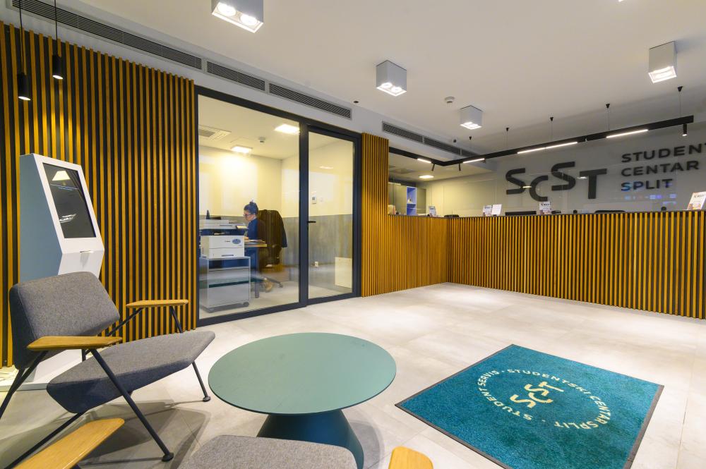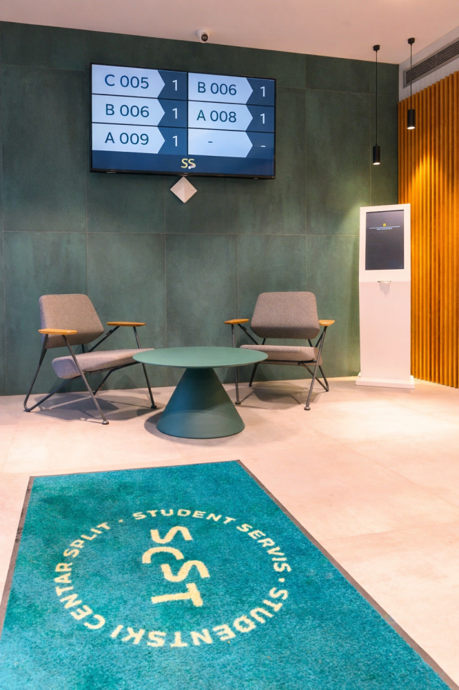 Suvremeno uređen interijer stvara ugodnu atmosferu već pri samom dolasku, dok je funkcionalnost prostora prilagođena potrebama svakodnevnog rada i korisnika. Uvođenjem digitalnog i online redomata studentima je omogućeno jednostavnije upravljanje dolascima, bolja preglednost reda te učinkovitije planiranje vremena, čime se značajno smanjuje nepotrebno čekanje.